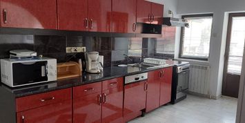 Mobilat: mobilat, Stil mobilier: modern, Stare mobilier: buna, Materiale mobilier: lemn masiv, Stare interior: in stare foarte buna, Bucatarie: deschisa inclusa in living, Modern mobilata, Complet echipata, Combina frigorifica, Cuptor microunde, Aragaz, Hota, Cafetiera, Compartimentare: decomandat, Usi interior: lemn masiv, Curte: comuna, Pavata, Gradina, Vechime imobil: nou, Stadiu constructie: finalizat, Stare imobil: buna, Structura: beton, Caramida, Pereti exteriori: caramida, Izolatie exterioara: tencuiala, Pereti interiori: caramida, Fatada: vopsea decorativa, Acoperis: tigla metalica, Plansee: beton armat, Confort: lux, Fundatie: cu ziduri (beton turnat), Acces: acces stradal, Strazi limitrofe: amenajate, Proprietate publica, Vedere: vedere mixta