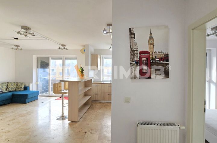 Apartamentul este situat la etajul 7 intr-un bloc finalizat in 2012 de tip D+P+7E+ Penthouse, dispune de o structura decomandata, avand in componenta un living open space cu bucataria, baie, hol, dormitor, birou si balcon, cu o suprafata totala de 59 mp si o arie utila de 56 mp si pozitionare nord-vestica .