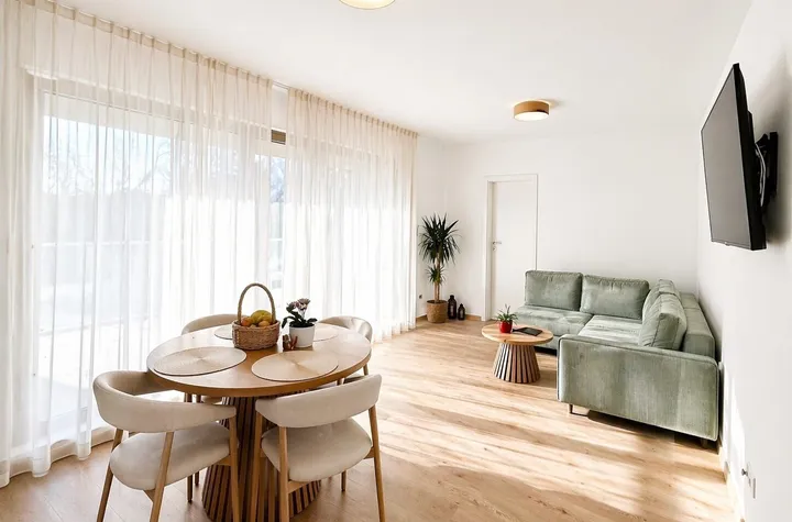 Mobilat: mobilat, Stare interior: finisat modern, Bucatarie: mobilata, Frigider, Hota, Masina de spalat vase, Compartimentare: semi-decomandat, Usi interior: mdf, Proprietarul plateste: telefon, Cablu tv, Stadiu constructie: finalizat, Structura: beton, Izolatie interioara: polistiren extrudat, Confort: i, Strazi limitrofe: asfaltate, Orientari: sud - vest