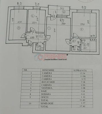 Apartamentul are o suprafata utila totala de 57 mp, compartimentare practica si potential excelent de reamenajare dupa preferintele viitorului proprietar.