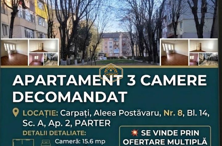 Îți recomand spre vanzare un apartament cu 3 camere, situat in cartierul Carpati 1, pe Aleea Postavaru, nr. 8, intr-o zona linistita si bine conectata, chiar in apropierea de Școala Gimnazială Octavian Goga, magazine alimentare, parc și alte puncte de interes.