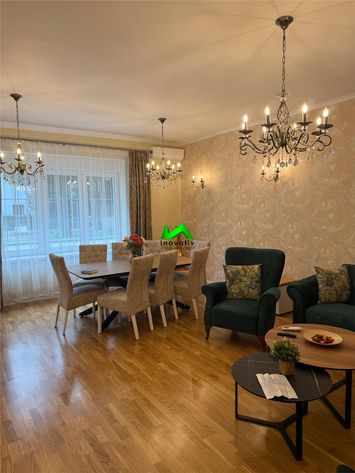 Agentia imobiliara Inovativ va ofera spre inchiriere un apartament de lux, cu o suprafata utila de 120 mp, pozitionat lam parterul unei cladiri amplasate central. Locuinta este la prima inchirere, complet mobilata, utilata si este compusa din hol, living generos, 2 dormitoare spatioase, 2 bai si terasa. Locuinat dispune de supraveghere video si alarma, seif, incalzire in pardoseala, clima, etc. Imobilul este pozitionat intr-o zona bine cotata pe piata imobiliara, centrala, avand in imediata apropiere numeroase puncte de interes public.