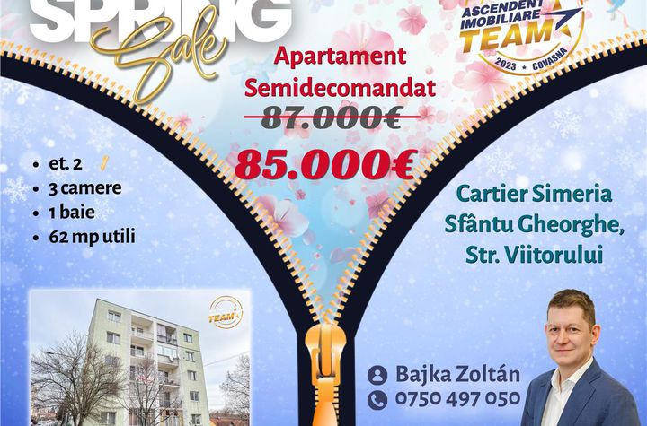 Va propune spre vanzare un apartament cu 3 camere, situat in Sfantu Gheorghe, pe strada Viitorului, zona Simeria.