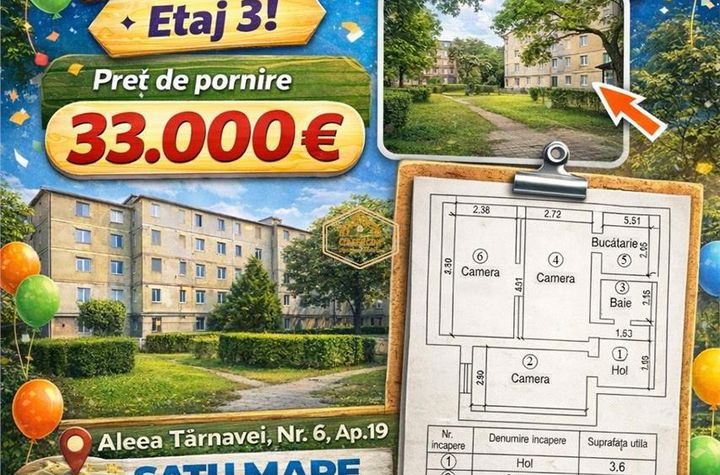 Prețul de pornire este de 33.000 Euro, prin ofertare multiplă, iar cea mai bună ofertă va cumpăra acest apartament.
