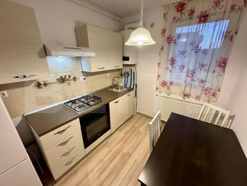 Apartamentul beneficiază de centrală termică proprie, geamuri termopan cu tâmplărie PVC și ușă metalică la intrare. Se închiriază complet mobilat și utilat.