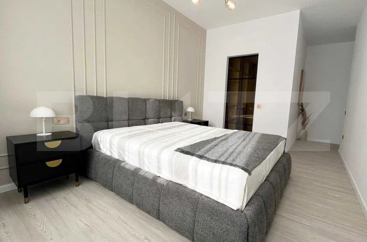 Compartimentarea de 70 mp este gândită astfel. living, dormitor, dressing, bucătărie, baie si un balcon deschis închis . Apartamentul este dotat cu următoarele : Mobilier nou, cuptor electric, plita cu inducție , mașina de spălat vase+ masinade spălat rufe.Acesta este poziționat la etajul 1 al unui imobil cu doar 3 niveluri