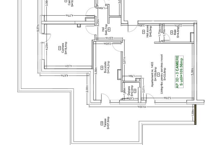 Apartamentul are o suprafață utilă de 114 mp și beneficiază de o terasă generoasă de 56,70 mp, , ideală pentru relaxare în aer liber și priveliști panoramice la apus.