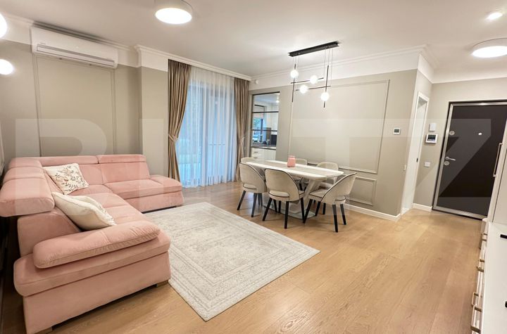 Imobilul beneficiază de finisaje premium, fiind complet mobilat și utilat cu electrocasnice de calitate superioară.