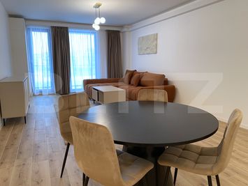 Apartamentul se vinde la stadiul finisat si mobilat, si beneficiaza de centrală termică proprie cu incalzire prin pardoseala, tamplarie termopan cu geamuri panoramice.