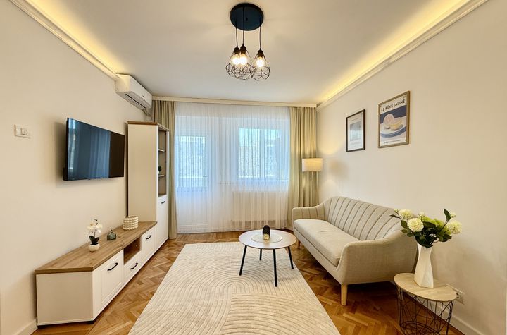Viitorul chirias va fi primul care il locuieste, totul fiind nou, de la finisaje pana la mobilier. Imobilul este dotat cu centrala proprie pe gaz, două aparate de aer conditionat, și dispune de un balcon care completeaza spatiul de locuit. Un mare avantaj îl reprezinta locul de parcare asigurat chiar în fata blocului, un beneficiu extrem de important in aceasta zona. Apartamentul este pregatit pentru mutare imediata.