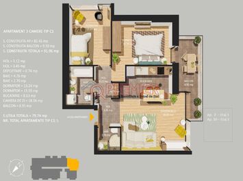 STU - SUPRAFAȚA TOTALĂ UTILĂ: 80.4 mp,SUPRAFAȚĂ TERASE/BALCOANE: 8.95 mp