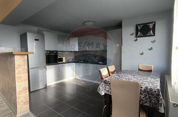 Finisaje: parchet laminat, Gresie, Vopsea lavabila, Faianta, Calorifere fonta, Dotari: masina de spalat rufe, Iluminat exterior, Televizor, Spatiu agrement; telecomandă poartă acces auto