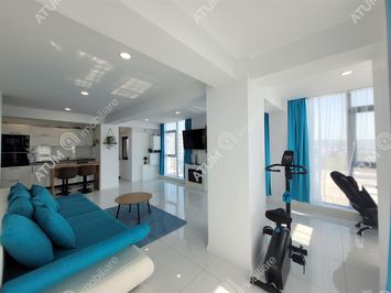 Locuinta se preda complet mobilata cu mobilier de bucatarie modern realizat pe comanda cu electrocasnice incastrate precum: plita electrica, hota, cuptor electric, cuptor cu microunde, frigider si masina de spalat vase. Livingul dispune de canapea, comoda, birou, semineu electric si TV smart, dormitoarele cu mobilierul specific si televizoare, bai cu obiecte sanitare, masina de spalat si masina de uscat rufe.