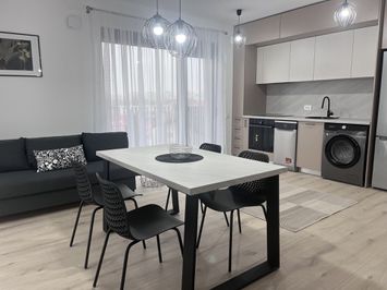 Mobilat: mobilat, Stil mobilier: modern, Stare mobilier: nou, Stare interior: nou, Bucatarie: deschisa inclusa in living, Modern mobilata, Complet echipata, Combina frigorifica, Cuptor microunde, Plita gaz, Cuptor electric, Hota, Masina de spalat vase, Compartimentare: semi-decomandat, Contract inchiriere: neinchiriat, Vizionari: imobil liber, Curte: comuna, Vechime imobil: nou, Stadiu constructie: finalizat, Stare imobil: exceptionala, Structura: beton, Confort: i, Plansee: beton armat, Strazi limitrofe: amenajate, Vedere: vedere stradala