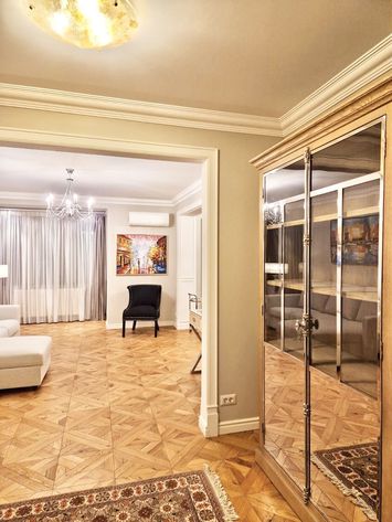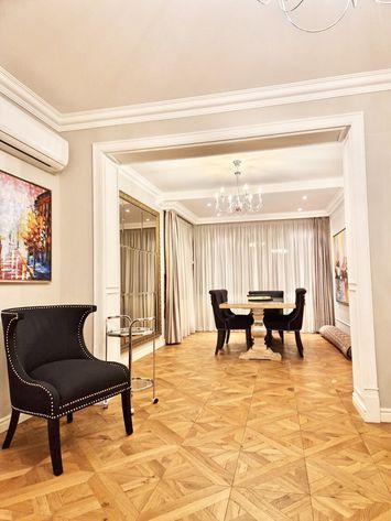 Apartament 3 camere situat intr-un imobil nou in zona Dorobanti Floreasca, amenajat de designner, luminos si spatios, dispus astfel: living cu iesire pe terasa ( 22mp ) , dinning, bucatarie mobilata si utilata, doua dormitoare, dormitorul matrimonial cu dressing si baie proprie cu cada, cu iesire pe balcon, dormitoarul secundar cu acces la baia cu dus. Apartamentul dispune de centrala termica proprie, masina de spalat vase, masina de spalat rufe, un loc de parcare in garajul subteran. Finisajele si mobilierul respecta cele mai inalte standarde, electrocasnicele sunt de ultima generatie.
