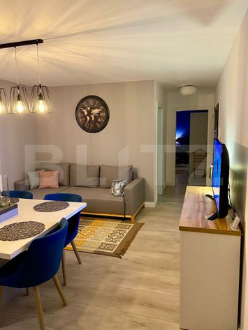 Apartamentul se afla amplasat intr-un bloc din caramida prevazut cu lift si izolat termic la exterior, dispune de aer conditionat, centrala termica proprie, tamplarie PVC cu geam termopan si este compus din: living open space cu bucataria, 2 dormitoare, baie si balcon. Locul de parcare se poate achizitiona la pretul de 5.000 euro. Pentru mai multe detalii nu ezitati sa ne contactati.