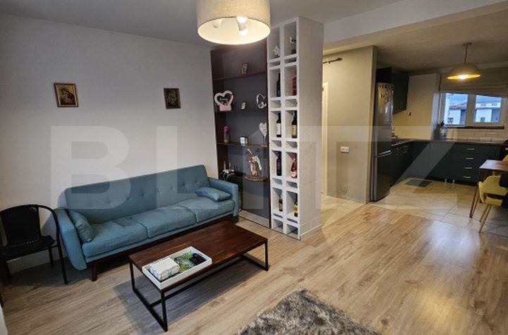 •hol generos la intrare, living cu bucătărie open space luminos, 2 dormitoare confortabile, baie complet utilată prevazuta cu geam, balcon de 7 mp.