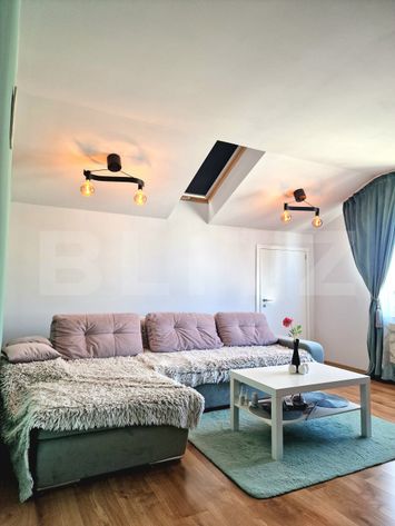 Situat la mansardă, etaj 4, al unui bloc central din Florești, aproape de