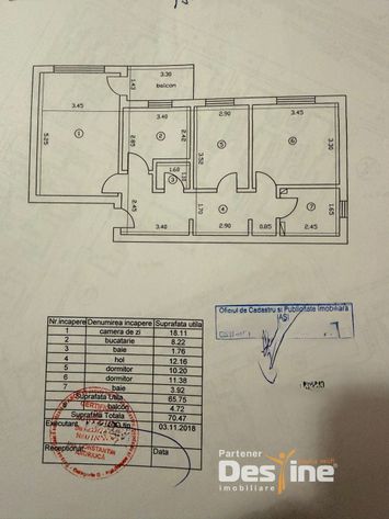 ** Suprafață totală 70.74 mp