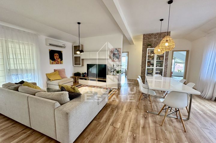 Mobilat: mobilat, Stare interior: finisat modern, Bucatarie: deschisa separata, Mobilata, Frigider, Aragaz, Hota, Masina de spalat vase, Compartimentare: semi-decomandat, Usi interior: lemn masiv, Proprietarul plateste: telefon, Cablu tv, Stadiu constructie: finalizat, Strazi limitrofe: asfaltate