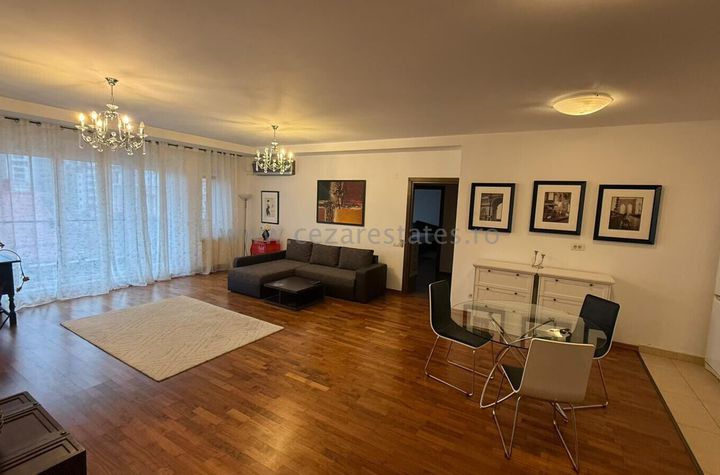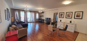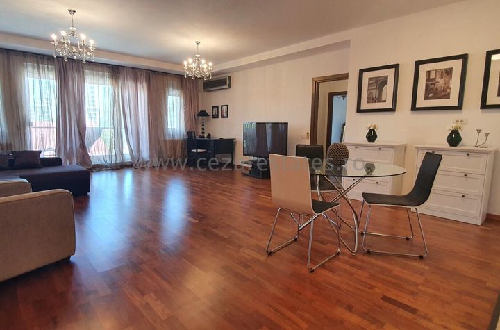 Cezar Estates presents, for rent, a spacious and elegant 2 bedrooms apartment situated in residential building from Herastrau - Soseaua Nordului area just across Herastrau Park. The building benefits from video surveillance, security 24/7 and underground parking. The apartment has a useful surface of 160 sqm divided in living, 1 bedrooms , 1 dresing, open kitchen, 2 bathrooms and 2 terraces of 10 sqm. The apartment has very good quality finishings and is fully furnished and equipped. We also offer 1 underground parking space . The apartment is suitable for a family, is situated at 2 minutes walking distance to the park and also very well related to the city and to all the modern life necessities: restaurants, hypermarkets, schools, kindergardens, medical centers, spa centers and malls.