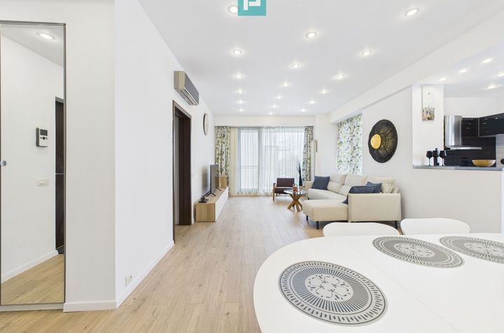 Apartament 3 camere, Lake Area north bucuresti, herastrau. Apartamentul este compus din sufragerie spatioasa cu zona de relaxare loc de luat masa, bucatarie mobilata si utilata, 2 dormitoare, 2 bai balcon, in pretul afisat este inclus si locul de parcare pretul fara loc de parcare ste 1650 EURO, apartamentul este modern si gata pregatit sa te poti muta