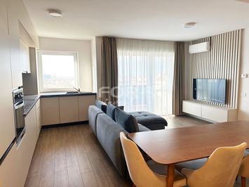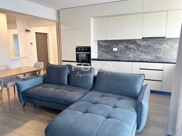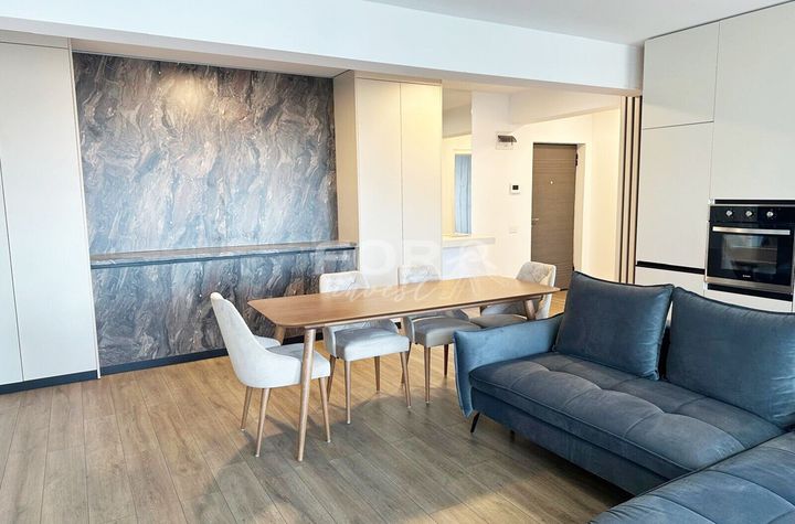 Apartamentul este complet mobilat si utilat cu mobilier modern si electrocasnice de calitate: masina de spalat vase, frigider, cuptor si plita electrica, hota, masina de spalat rufe, trei televizoare si aer conditionat.