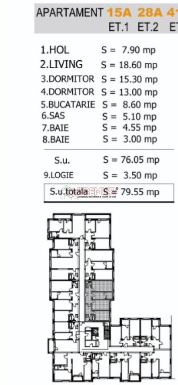STU - SUPRAFAȚA TOTALĂ UTILĂ: 74.95 mp,SUPRAFAȚĂ TERASE/BALCOANE: 1.7 mp