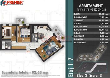 STU - SUPRAFAȚA TOTALĂ UTILĂ: 82.63 mp,SUPRAFAȚĂ TERASE/BALCOANE: 7.77 mp
