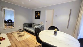 - Living modern, conectat cu bucătăria, cu canapea confortabilă și zonă de dining cu masă și 4 scaune, un loc perfect pentru relaxare, întâlniri cu prietenii sau momente de familie.