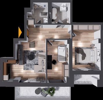 Spatiu: 88,45 mp totali, bucatarie open space (cu posibilitate de inchidere), 2 dormitoare si balcon cu vedere spre oras.