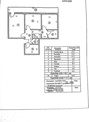 STU - SUPRAFAȚA TOTALĂ UTILĂ: 73.1 mp,SUPRAFAȚĂ TERASE/BALCOANE: 13 mp