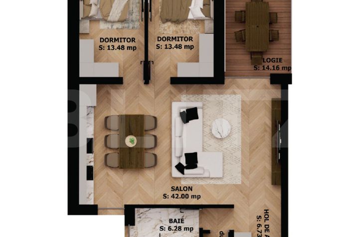 Livingul generos devine centrul locuinței, un spațiu ideal pentru momentele petrecute alături de familie sau prieteni, în timp ce dormitoarele oferă intimitate și liniște. Logia spațioasă completează perfect apartamentul, fiind locul potrivit pentru momente de respiro, cafeaua de dimineață sau admirarea orașului într-un cadru calm și elegant.