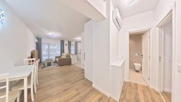 Apartamentul dat spre inchiriere este confort 1, are o suprafata utila totala de 88mp cu inclusiv terasele, este mobilat si utilat complet cu materiale, mobilier, electrocasnice din game premium. Este luminos, cu orientare EST -VEST - este amenajat in culori deschise, compatibile care asigura confort vizual si da eleganta apartamentului. Apartamentul beneficiaza  de incalzire in pardoseala cu centrala proprie de apartament, are aparate de aer conditionat pentru racire pe parcursul verii. Se inchiriaza impreuna cu un