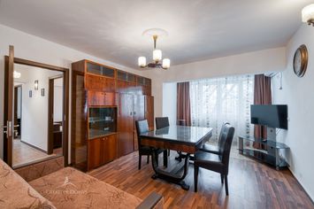 Este decomandat si compus din 3 camere, bucatarie, baie si holuri. La subsol are o boxa pentru depozitare. Este renovat integral; bucataria, baia, holurile, multe piese de mobilier, parchetul, gresia, faianta si electocasnicele sunt noi: centrala termica proprie, aparatele de aer conditionat din fiecare camera, aragazul, frigiderul, masina de spalat vase, masina de spalat rufe, hota si televizorul... Sunt noi! Fiecare etaj al blocului are cate o uscatorie. O piata si policlinica sunt langa bloc, la parter sunt magazine, Parcul si Clubul Elevilor sunt peste drum.
