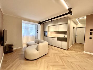 Bucătăria este open-space cu livingul, fiind complet mobilată și utilată, oferind un spațiu primitor și funcțional.
