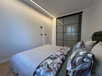 Locuința dispune de două dormitoare, dintre care unul este amenajat cu dressing, iar celălalt este liber și poate fi mobilat la cerere sau lăsat pentru ca viitorul chiriaș să își pună propria amprentă.