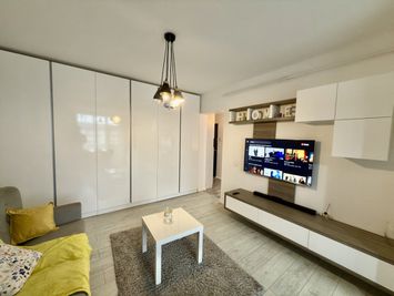 • Living + Bucătărie open-space, mobilata și complet utilată