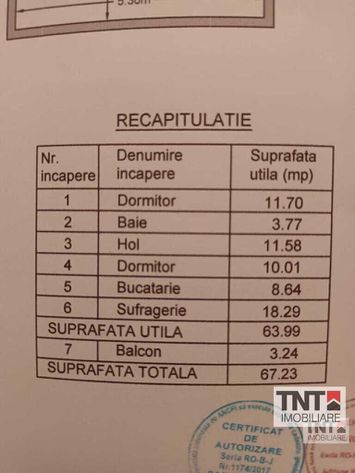 TNT IMOBILIARE OFERA spre vanzare apartament 3 camere decomandat spatios si bine compartimentat cu o suprafata de 67 m situat la etajul 4 din 4 cu pod intrare separata de pe casa scarii cu posibilitate de mansardare, 1 balcon inchis ccu tamplarie PVC,contract apa-canal individual, constructie inbunatatita, compartimentare eficienta, izolatie termica pe exterior, balcon inchis, centrala termica,tamplarie pvc cu geam termopan si rulouri exterioare.