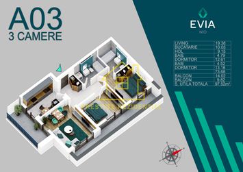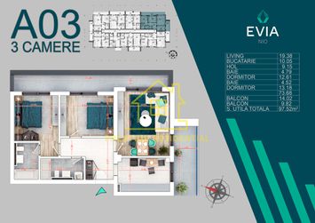 Suprafata - 74mp + 24mp balcon = total 98mp