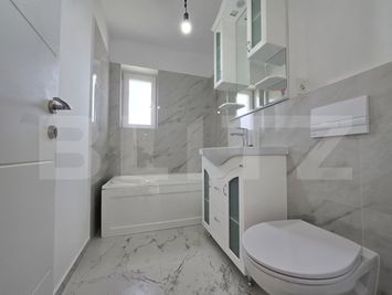 Blitz vă propune spre vânzare un apartament cu 3 camere, cu o suprafață totală de 135 mp, la parterul unui bloc nou. Apartamentul este compartimentat astfel: 2 holuri, 1 bucătărie, 1 camera de zi, 2 dormitoare, 1 baie și o grădină cu o suprafață de 72mp . În apropierea acestuia se află restaurante, cafenele, săli de sport, parcuri, aeroportul și autostrada. In cazul in care apartamentul se doreste a fi cumparat cu credit, pretul este + TVA