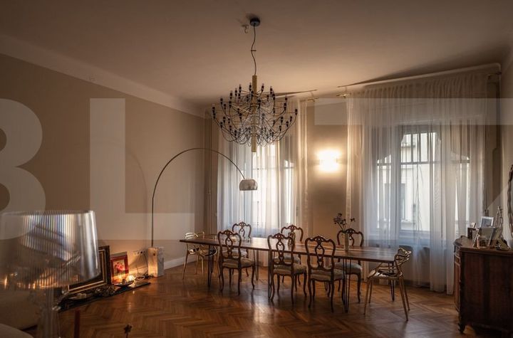 Aici, la etajul său nobil, vă așteaptă un apartament de poveste. Cu tavane înalte ce respiră aerul începutului de secol XX, cu parchet vechi din lemn masiv care păstrează amintirea pașilor eleganți ai vremurilor trecute și cu ferestre mari ce lasă lumina să mângâie pereții încărcați de istorie.