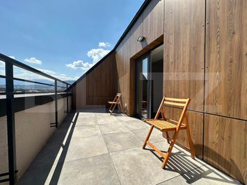 Apartamentul se remarca prin modul in care sunt dispuse incaperile, pe doua nivele, cu o suprafata utila totala de 100 mp, terasele oferind o priveliste deosebita asupra orasului si muntilor.