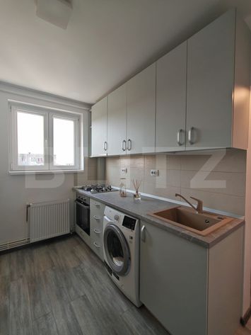 Acesta este situat la etajul 4 al unui imobil cu 4 nivele. Blocul este din caramida. Suprafata utila este de 62 mp, compartimentarea se prezinta astfel: hol intrare foarte spatios, bucatarie complet mobilata (mobilier nou, la comanda) si utilata, living, 2 dormitoare, 1 baie cu geam, 2 balcoane din care unul inchis. Apartamentul a fost recent renovat, a fost schimbata instalatia electrica si termica si se preda asa cum apare in fotografii. Balcoanele sunt in faza de terminarea lucrarilor.