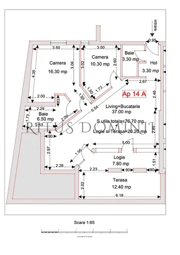 STU - SUPRAFAȚA TOTALĂ UTILĂ: 96.7 mp,SUPRAFAȚĂ TERASE/BALCOANE: 20.2 mp