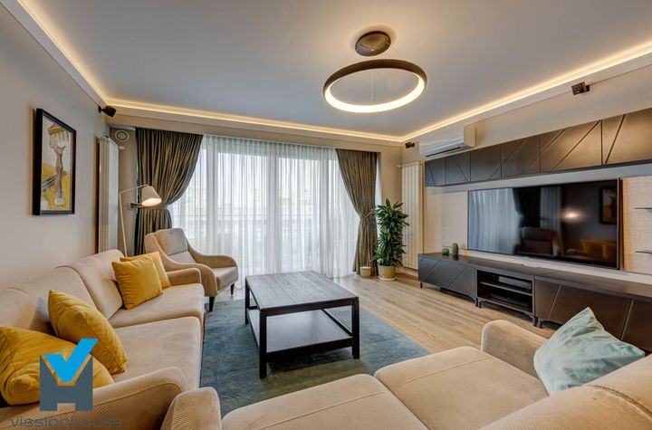 Finisajele interioare sunt realizate in nuante calde si de foarte buna calitate, incluzand gresie, faianta, parchet din lemn si sistem de aer conditionat. Bucataria este complet echipata cu electrocasnice de la branduri premium precum Franke si Bosch.