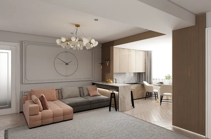 * Living spatios cu bucatarie open-space, perfect pentru relaxare si socializare