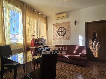Locuinta este mobilata si utilata complet, pregatita pentru mutare imediata. Dispune de electrocasnice (frigider, plita, cuptor, hota, masina de spalat rufe, aer conditionat), mobilier modern si finisaje bine intretinute.