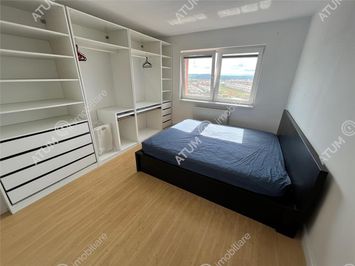 Balconul inchis ofera spatiu suplimentar, perfect pentru relaxare sau depozitare, cu o vedere panoramica impresionanta asupra orasului si Muntilor Fagaras.