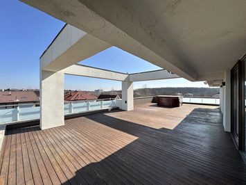 Suprafata utila a apartamentului este de 135 mp, la care se adauga terasa de 101 mp si doua balcoane.